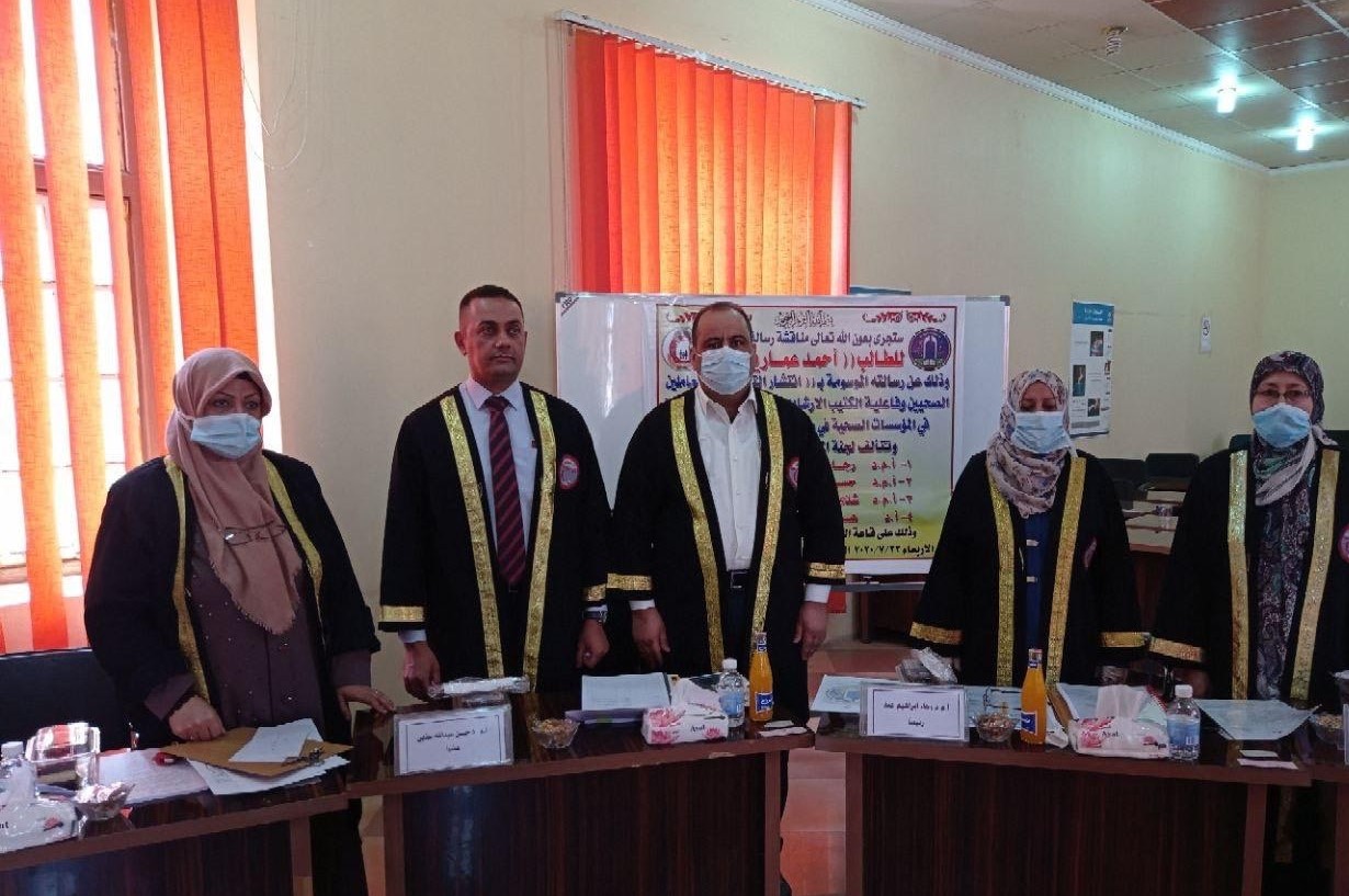 كلية التمريض تناقش انتشار التدخين بين العاملين الصحيين وفاعلية الكتيب االرشادي المتعلق بمخاطر التدخين في المؤسسات الصحية في مستشفى بغداد التعليمي ناقش فرع تمريض البالغين في كلية التمريض جامعة بغداد رسالة الماجستير الموسومة (انتشار التدخين بين العاملين الصحيين وفاعلية الكتيب االرشادي المتعلق بمخاطر التدخين في المؤسسات الصحية في مستشفى بغداد التعليمي ) لطالب الماجستير احمد عمار ياسر. هدفت الرسالة إلى تقييم انتشار التدخين بين البلدان المنخفضة والمتوسطة الدخل , العاملين الصحيين في مستشفى بغداد التعليمي ومعرفة مدى فعالية الكتيب المتعلق بمخاطر التدخين. واشارت نتائج الدراسة الى وجود فروقات ذات دلالة معنوية عالية حول فعالية الكتيب في الاختبار القبلي والبعدي على العاملين الصحيين حول مخاطرالتدخين على الصحة الشخصية وبيئة المريض. اوصت الدراسة بإمكانية إجراء دراسات مكثفة وشاملة واسعة العاملين الصحيين المدخنين النطاق على المستوى الوطني لتحسين معرفة العاملين الصحيين فيما يتعلق بمخاطر التدخين على صحة الانسان والبيئة فضلاً عن ضرورة تطبيق سياسة تمنع التدخين داخل المستشفيات والمؤسسات الصحية.كونورسينج03/09/2020كلية التمريض تناقش انتشار التدخين بين العاملين الصحيين وفاعلية الكتيب االرشادي المتعلق بمخاطر التدخين في المؤسسات الصحية في مستشفى بغداد ... المزيد