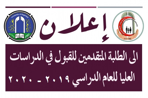إعلان الى المتقدمين للدراسات العليا للعام الدراسي 2019-2020