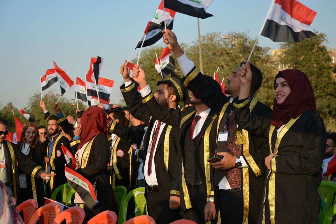 شارك طلبة كلية التمريض وأساتذتها في حفل التخرج المركزي للدورة ٦٠ ( دورة التحرير والبناء ) والمقام على حدائق كلية التربية الرياضية والبدنية في جامعة بغداد.