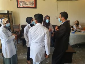 بإشراف مباشر من عمادة كلية التمريض جامعة بغداد متمثلة بالسيدة العميد الأستاذ الدكتور هدى باقر حسن و حسب توجيهات معالي وزير التعليم العالي والبحث العلمي المحترم بضرورة متابعة نسبة التلقيح ضد وباء كورونا المستجد في جامعاتنا الحكومية والاهلية وتشجيع الطلبة والاساتذة التدريسيين وكافة المنتسبين على اخذ اللقاح ضد فيروس كورونا المستجد على بركة الله تعالى تم في صباح يوم الاربعاء صباح الموافق 4/8/20210 بفتح المنفذ التلقيحي ضد فيروس كوفيد -19 في كلية الصيدلة جامعة بغداد بالتعاون مع كلية التمريض ودائرة صحة بغداد الرصافة. إنطلقت حملة التطعيم ضد فيروس كورونا للكادر التدريسي و الاداري والطلبة في مجمع كليات باب المعظم حيث لوحظ اقبال عدد كبير من التدريسيين والطلبة على اخذ اللقاح للحد من انتشار الفيروس وابعاد خطر الاصابة عنهم وعن عوائلهم حيث أن اللقاح أصبح ضروة مهمة لا تخص الفرد وحده ولكن تخص المجتمع بأكمله كونها الأمل الوحيد للنجاة من الموت وابعاد شر الوباء.ان عملية التطعيم ضد كوفيد-19 سارت بانسيابية عالية وبشكل منتظم كما تم خلال ذلك اتخاذ كافة الاجراءات الصحية والوقائية و الإلتزام بالتباعد الاجتماعي خلال عملية التطعيم للحفاظ على صحة وسلامةالتدريسيين وأبنائنا الطلبة والفريق الطبي.