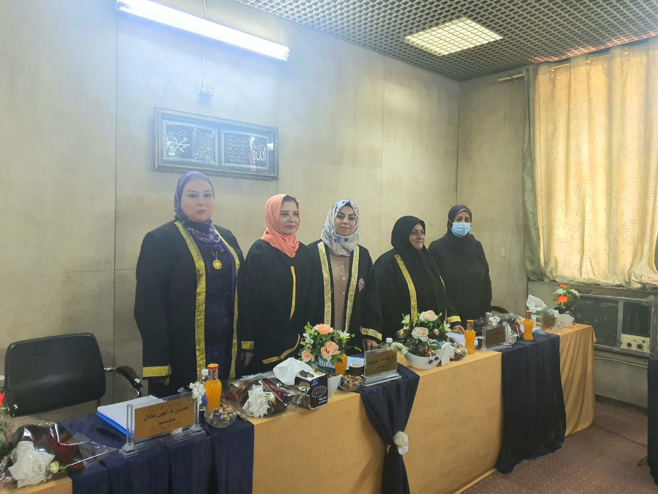 ناقش فرع تمريض الام والوليد في كلية التمريض جامعة بغداد رسالة الماجستير الموسومة (تقويم السلوكيات الصحية المتعلقة بالحمل للنساء الحوامل المراجعات لقطاع الرعاية الصحية الأولية في ابي غريب) لطالبة الماجستير هدى عبدالامير خليل حمد.