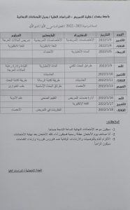 جدول امتحانات الدراسات العليا (دبلوم عالي – ماجستير – دكتوراه) / الفصل الدراسي الأول / الدور الأول للعام الدراسي ٢٠٢١-٢٠٢٢ .