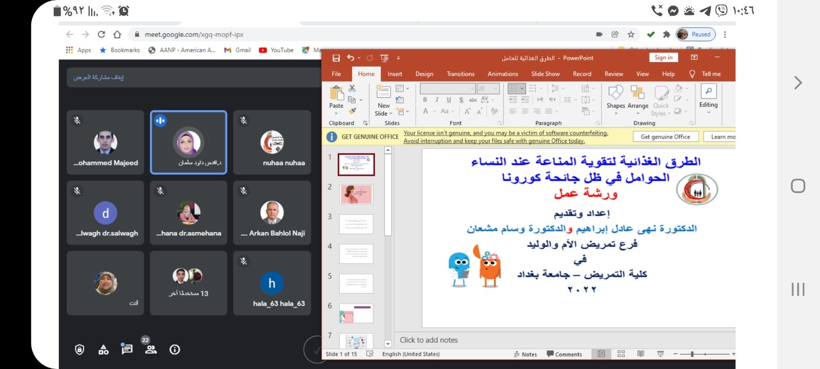 نظم فرع تمريض الام والوليد مع الوحدة العلمية في الكلية ورشة عمل إلكترونية بعنوان الطرق الغذائية لتقوية المناعة عند النساء الحوامل في ظل جائحة كورونا .