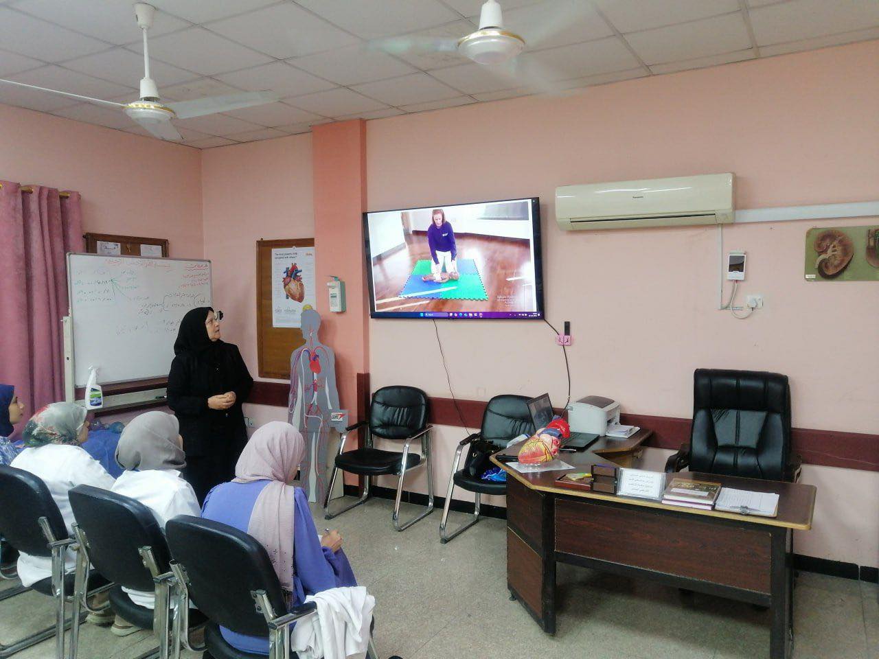 نظمت وحدة التأهيل والتوظيف والمتابعة في كلية التمريض بجامعة بغداد ورشة عمل بعنوان “الإنعاش القلبي الرئوي”. قدمت الورشة الأستاذ الدكتورة حكيمة شاكر حسن، واستهدفت مجموعة من الممرضين الجامعيين وطلبة الدراسات الأولية والعليا.