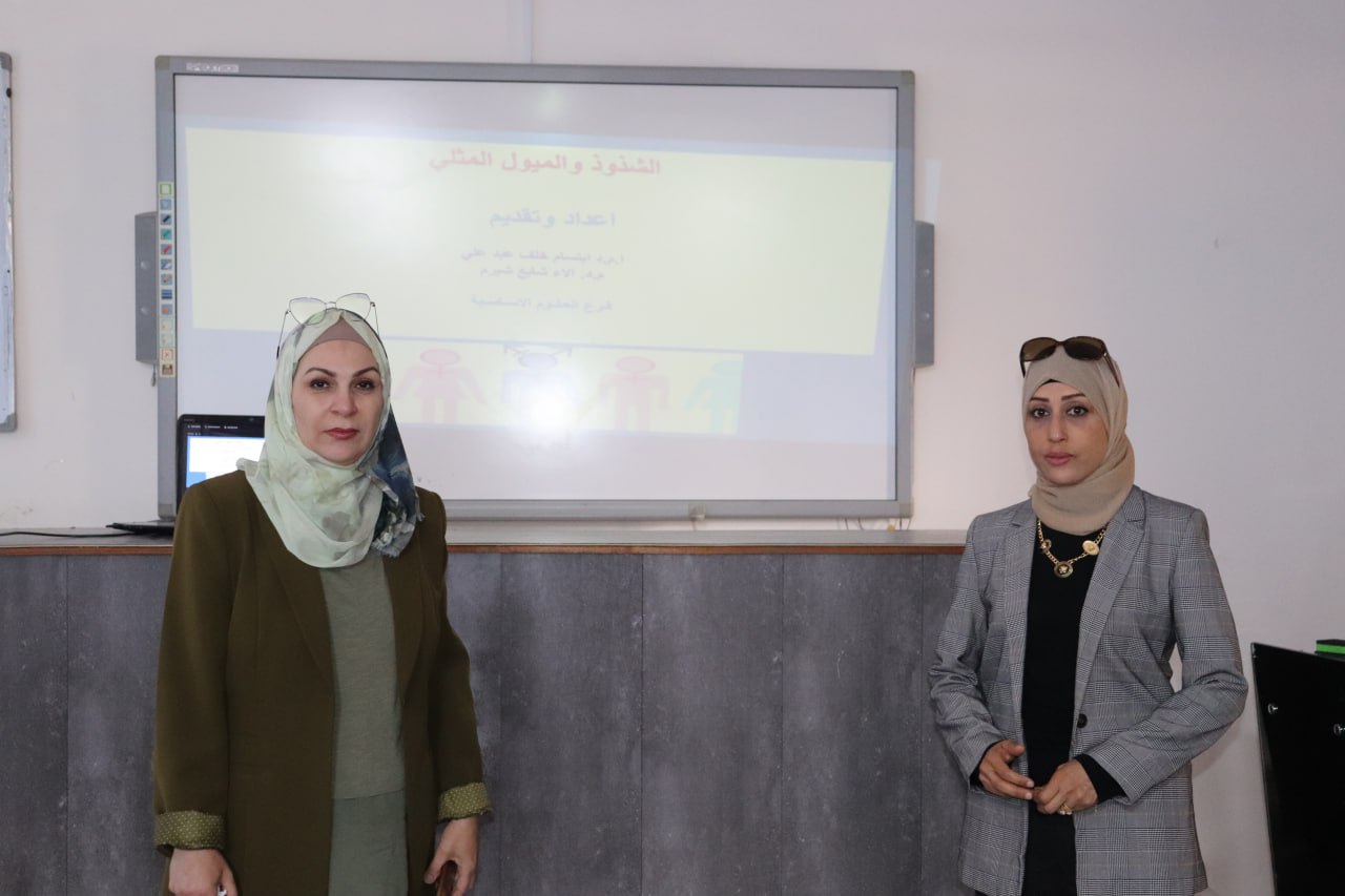 نظمت كلية التمريض في جامعة بغداد ندوة الشذوذ والميول المثلية ألقتها كل من الأستاذ المساعد الدكتورة ابتسام خلف والمدرس الدكتورة آلاء شايع شبرم حضرها مجموعة من التدريسين والموظفين في قاعة التعليم المستمر في الكلية.