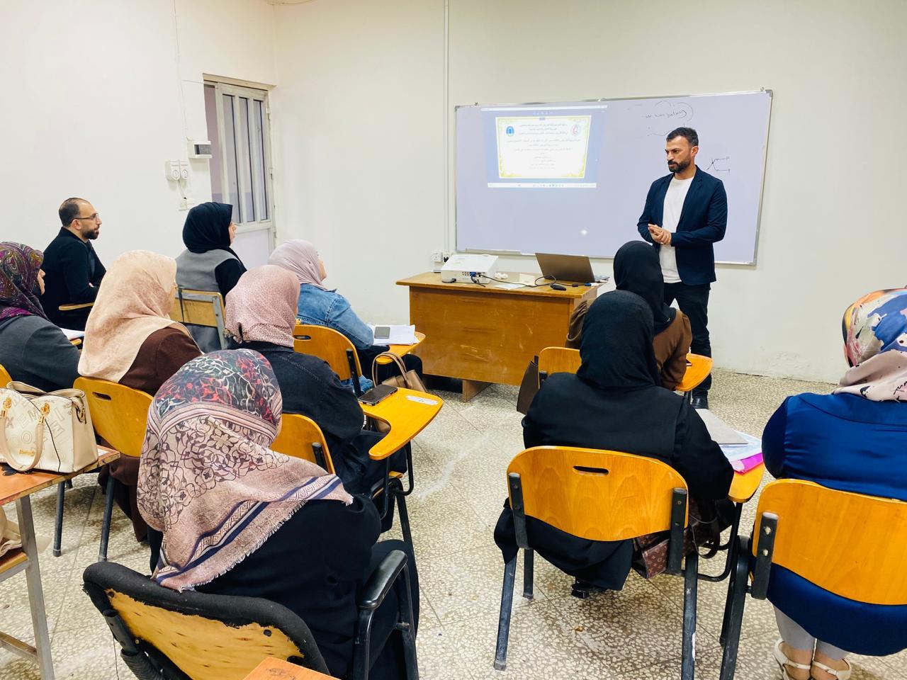 نظمت وحدة التأهيل والتوظيف والمتابعة في كلية التمريض بجامعة بغداد ورشة عمل قيمة حول (التسويق الإلكتروني). قدم الورشة المدرس المساعد مصطفى وجيه حسين في قاعة الدراسات العليا بالكلية.