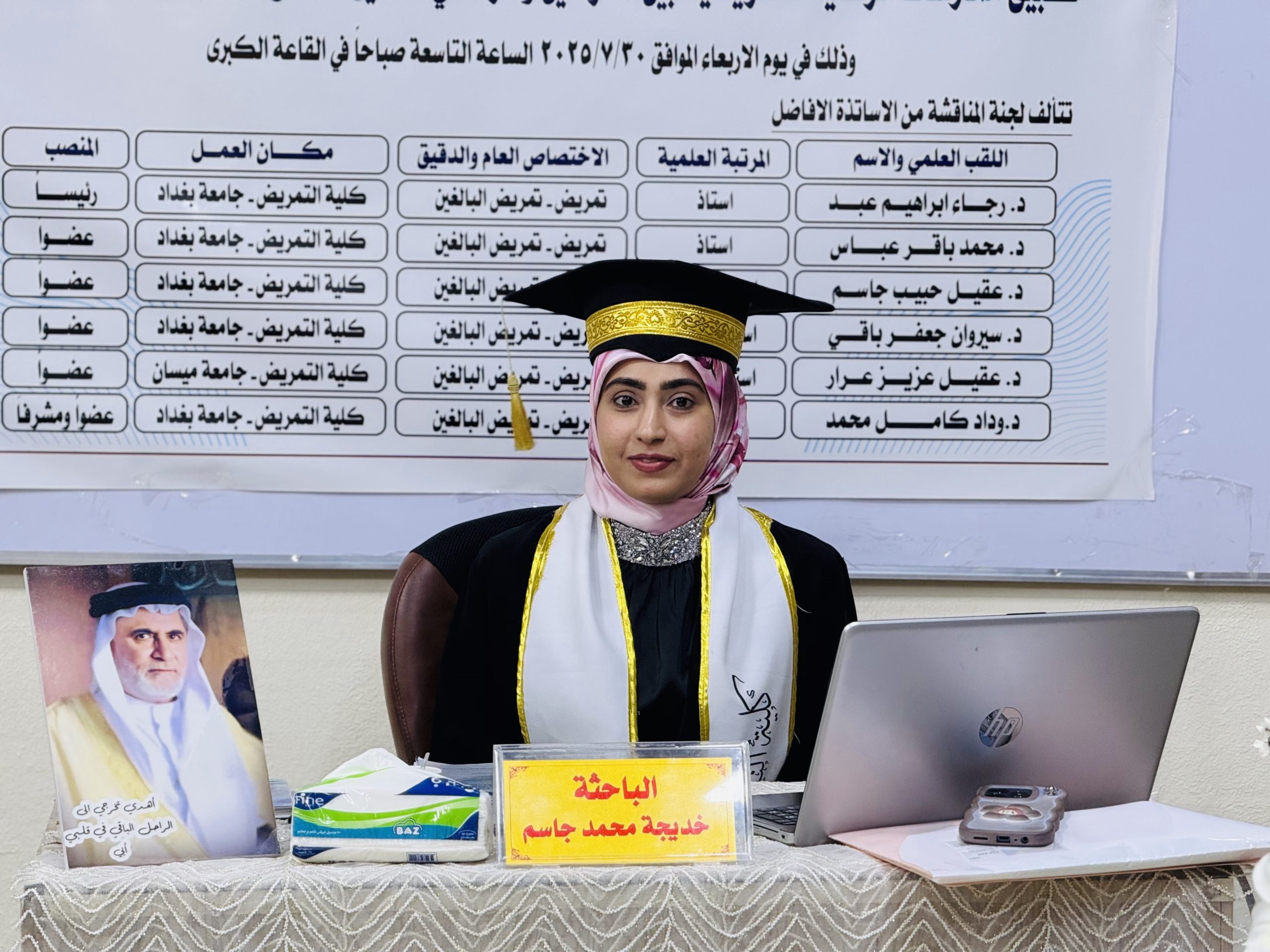 ناقشت كلية التمريض بجامعة بغداد أطروحة دكتوراه بعنوان “تطبيق ممارسات الرعاية التمريضية بين الممرضين وأثرها في تحسين النتائج لمرضى السكتة الدماغية”، قدمتها طالبة الدكتوراه خديجة محمد جاسم بإشراف الاستاذ الدكتورة وداد كامل محمد في القاعة الكبرى بالكلية.