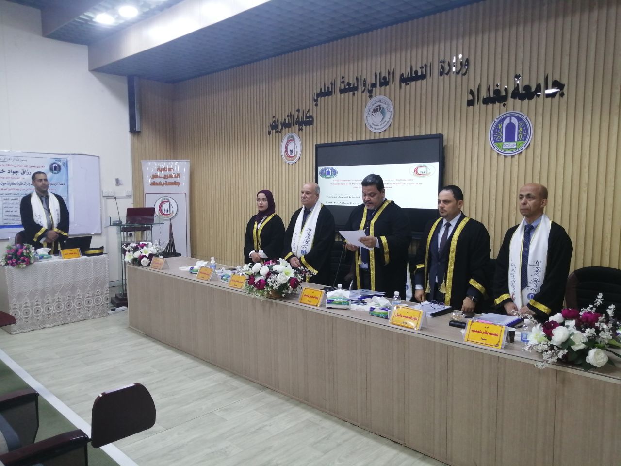 ناقشت كلية التمريض بجامعة بغداد مناقشة أطروحة دكتوراه نوعية، قدمها الباحث رزاق جواد خلف، بعنوان “فاعلية برنامج تعليمي على المعارف والمعتقدات الصحية لطلبة الكليات حول داء السكري النوع الثاني” بإشراف الأستاذ الدكتور أركان بهلول ناجي في القاعة الكبرى بالكلية