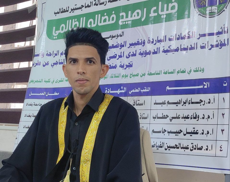ناقشت كلية التمريض بجامعة بغداد رسالة ماجستير بعنوان “تأثير الكمادات الباردة وتغيير الوضعية على ألم الظهر وعدم الراحة واستقرار المؤشرات الديناميكية الدموية لدى المرضى الخاضعين للتداخل التاجي عن طريق الجلد: تجربة منضبطة معشاة”، للطالب ضياء رهيج فضالة بإشراف الأستاذ الدكتور صادق عبد الحسين حسن الفياض في قاعة المتحف بالكلية.