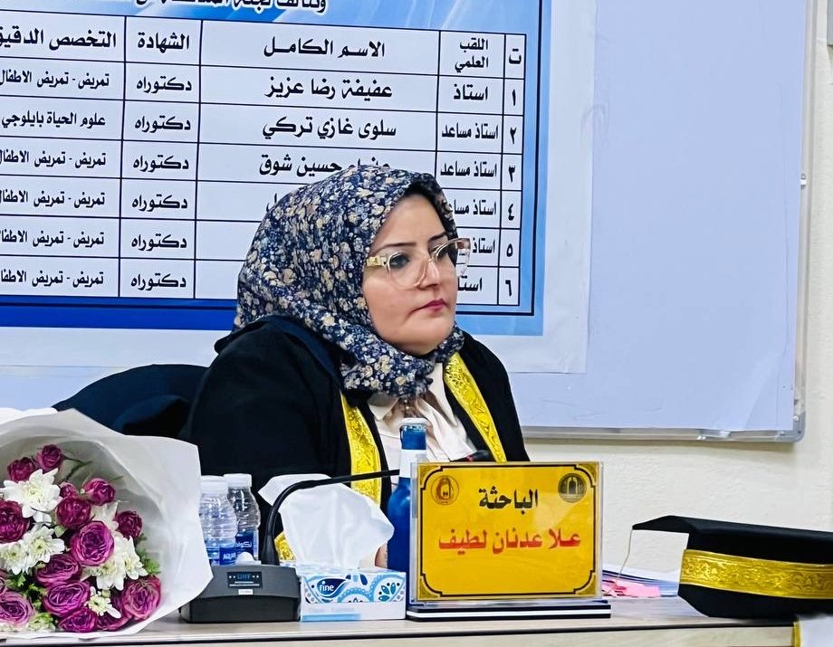 ناقشت كلية التمريض بجامعة بغداد أطروحة الدكتوراه بعنوان “فاعلية البرنامج التعليمي لجاهزية الأمهات حول خطة التخريج للأطفال المصابين بمرض ابيضاض الدم” للباحثة علا عدنان لطيف بإشراف الأستاذ الدكتورة ختام مطشر حطاب في القاعة الكبرى بالكلية.