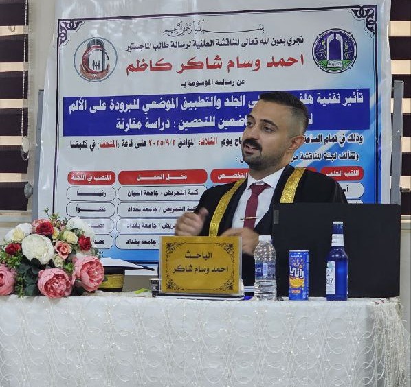 ناقشت كلية التمريض في جامعة بغداد رسالة ماجستير، بعنوان “تأثير تقنية هيليفر للنقر على الجلد والكمادات الموضعية الباردة على الألم لدى الرضّع الخاضعين للتطعيم: دراسة مقارنة”. للطالب أحمد وسام شاكر بإشراف الأستاذ الدكتورة ختام مطشر حطاب في قاعة المتحف بالكلية.