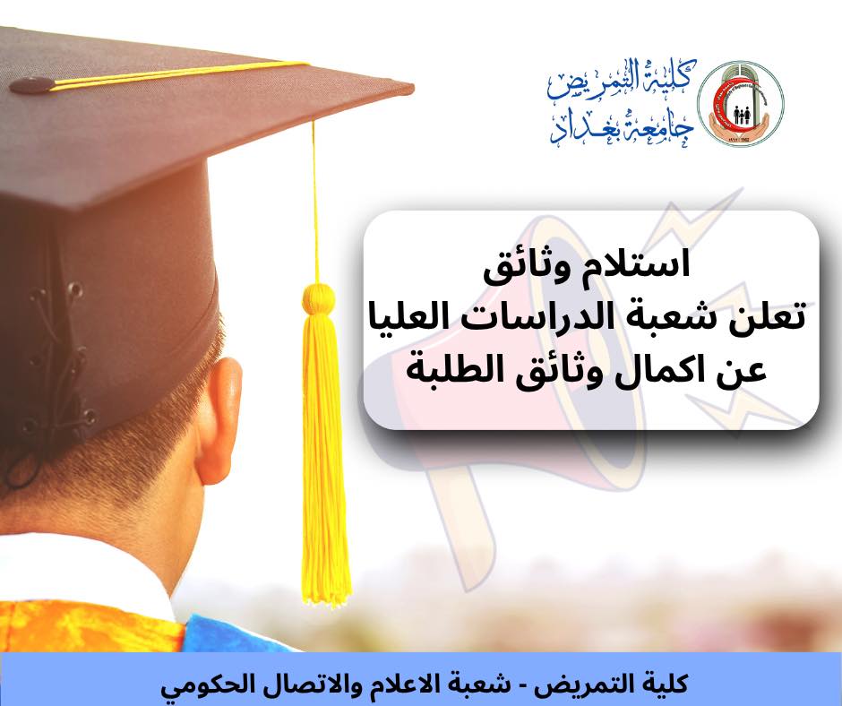 تعلن شعبة الدراسات العليا عن اكمال وثائق الطلبة حسب الرابط ادناه
