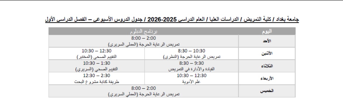 جدول الدراسات العليا (الدبلوم العالي- ف1)